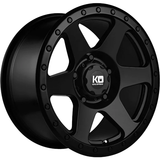 The Rebel wheel by King Offroad is a super strong and sleek design. Available in 16" and 17" sizes, in Satin Black or Black Machined Finish. These wheels feature 6 spokes with an internal slot, giving them a smooth design...