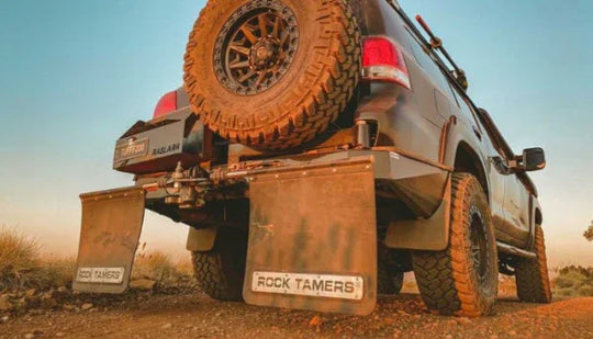 Rock Tamers 2” Hub Mudflap System with Matte Black/Stainless Steel Trim and an 850mm Rock Screen offers adjustable, removable protection ideal for towing. It combines heavy-duty utility with a stylish look to protect vehicles, trailers, and boats from damage. Easy...