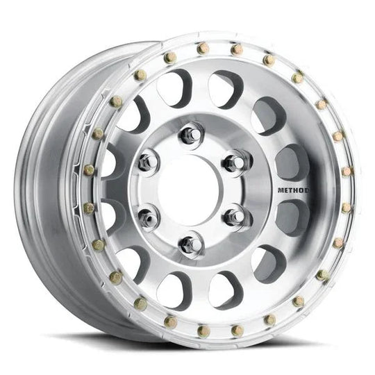 One-piece 356 aluminum construction w/ T6 heat treatment Dakar Rally Inspired 16 spoke design Pockets machined out of spoke windows for further weight savings Method logo debossed on outer lip Snap-in center cap Super strong 1,651 kgs. load rating Bore 106.25...