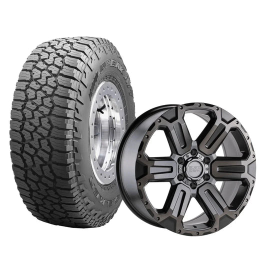 Ford Ranger Next Gen Wheel & Tyre Package - Set of 4 Includes fitment of the tyres to the wheels and balancing *Tyre pressure sensors are an optional extra 4 x Black Rhino Wanaka Wheels 17X8.5 6/139.7 +35 Gunmetal Grey...