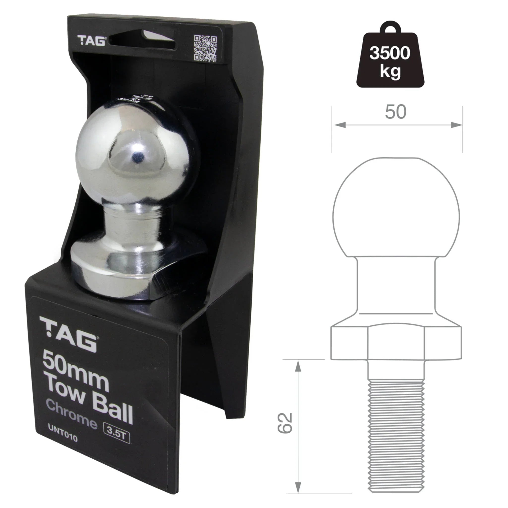 - Attachment Type: 50mm Tow Ball Mount