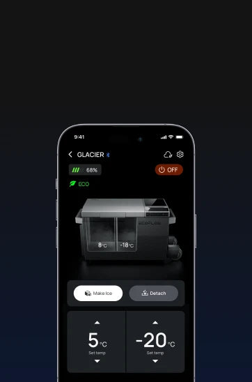 The EcoFlow app allows the intelligent temperature control of Glacier via Wi-Fi or Bluetooth.