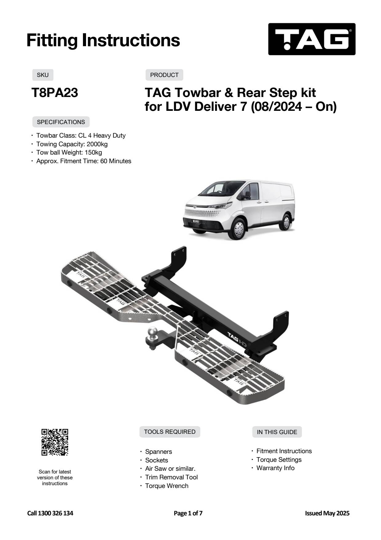 TAG Rear Step & Towbar Kit for LDV Deliver 7 Van (08/2024 - on)