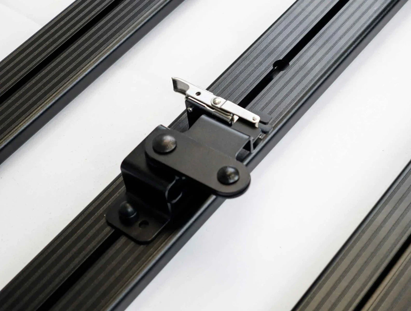 A set of 4 plates that allow you to mount your Ikamper / Eezi Awn / Ironman / Gravity tent to a Front Runner Rack using the TBMK020. These black powder-coated plates slide into the tent extrusion and bolt onto the latch bracket and self-aligning bushes.